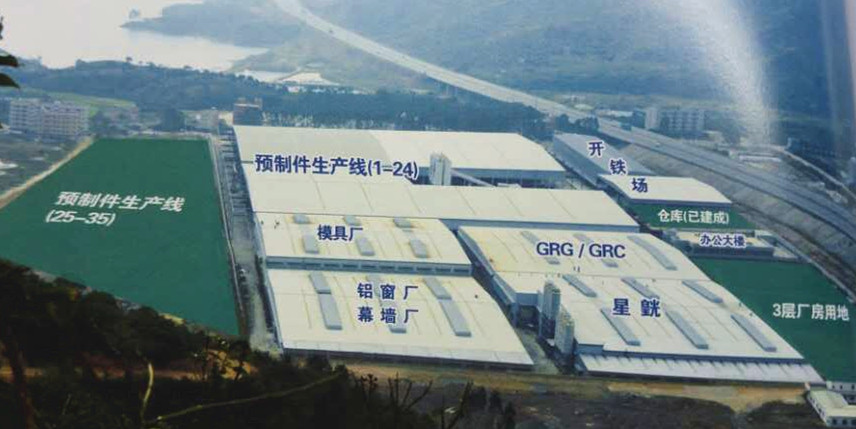 18.3萬平方米的廠區分為星皝建材、GRG/GRC、鋁窗/幕墻廠、模具廠、混凝土預制件生產線等區域。