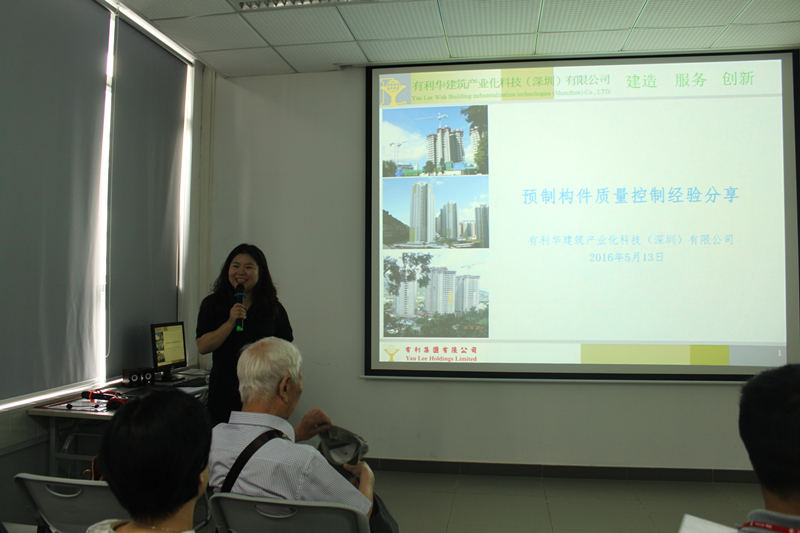 有利華設計總監戴鵬在對企業作了簡單介紹后,結合過去在裝配式構件制作安裝中的實戰經驗,重點介紹了在預制構件設計、生產、運輸等過程中的質量控制方法,分享了其多年來在預制構件生產中的經驗做法和總結,干貨滿滿。