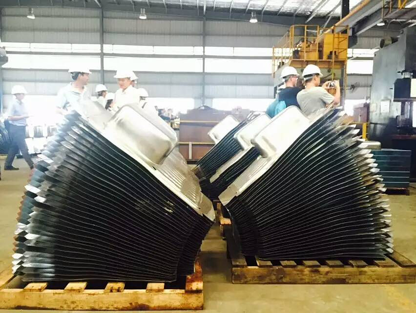 隨后,考察團來到了模具和鋁窗幕墻的生產廠區,其先進的廠房設備及強大的技術支撐,水槽與灶臺一體化整片按壓成型的先進生產技術、機器手代替人工操作的智能化產業升級手段、大型機床鋼材切割的高精度等,令考察團大開眼界。