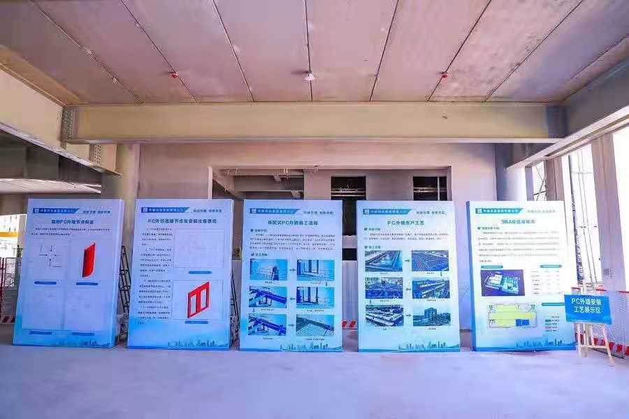 走進園區施工現場,工人們正在緊張忙碌地進行施工,一棟棟裝配式廠房快速往上“長”。而這些快速往上“長”的廠房,處處都閃耀著中建科技裝配式建造的“黑科技”。據了解,百米高層預應力空心板示范項目的各棟塔樓主體結構層高高、跨度大、荷載重,最大跨度達12米;廠房荷載首三層為2.5噸/平方米,標準層為650千克/平方米。標準層樓板采用預應力空心板,可以達到免模板、免支撐,且安裝簡便,施工速度快,大大縮短了工期。