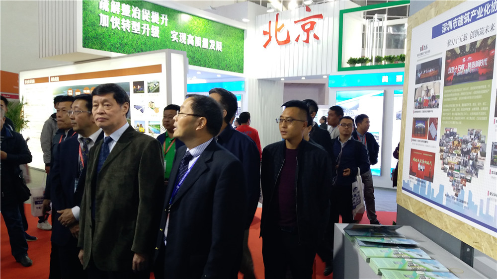展會期間,住建部總工程師陳宜明,住房和城鄉建設科技與產業化發展中心文林峰副主任在深圳市住房和建設局副局長高爾劍、洪海靈同志、局科工處處長劉軼群、戴運祥調研員、深圳市建設科技促進中心岑巖主任等領導的陪同下,察看深圳市裝配式建筑的最新技術和系列產品,并對深圳展團多方積極參與、準備充分的參展情況和深圳市裝配式建筑取得的成果給予了肯定,同時還對深圳市裝配式建筑下一步的發展給予鼓勵和指導。