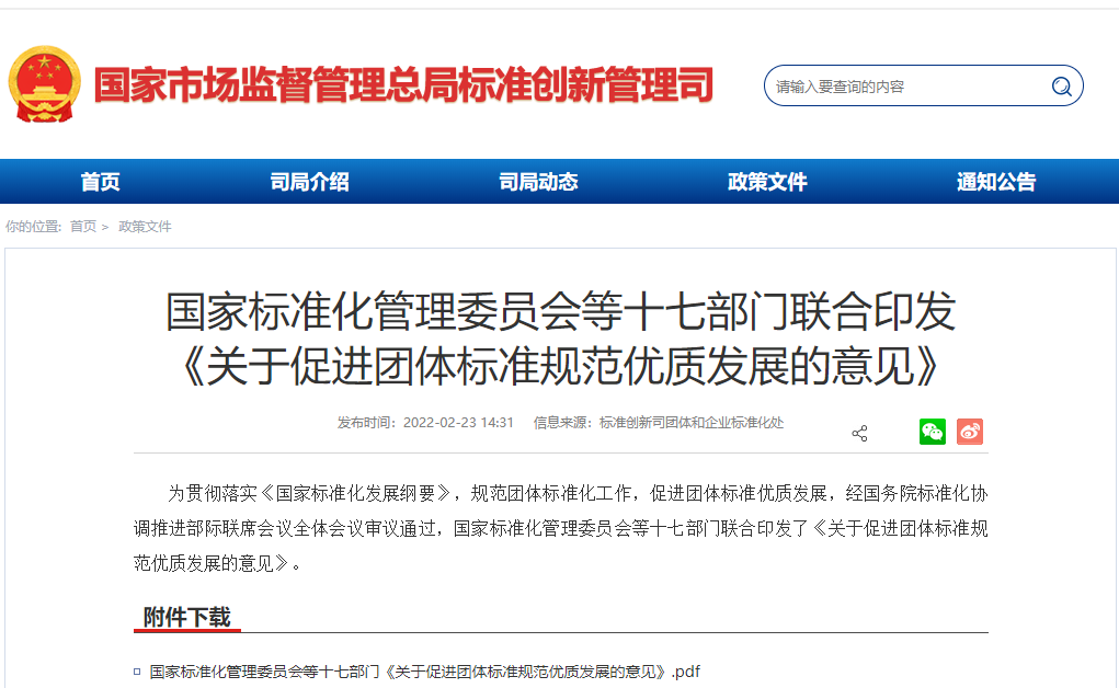 關(guān)注:17部委聯(lián)合發(fā)文促進(jìn)團(tuán)體標(biāo)準(zhǔn)規(guī)范優(yōu)質(zhì)發(fā)展