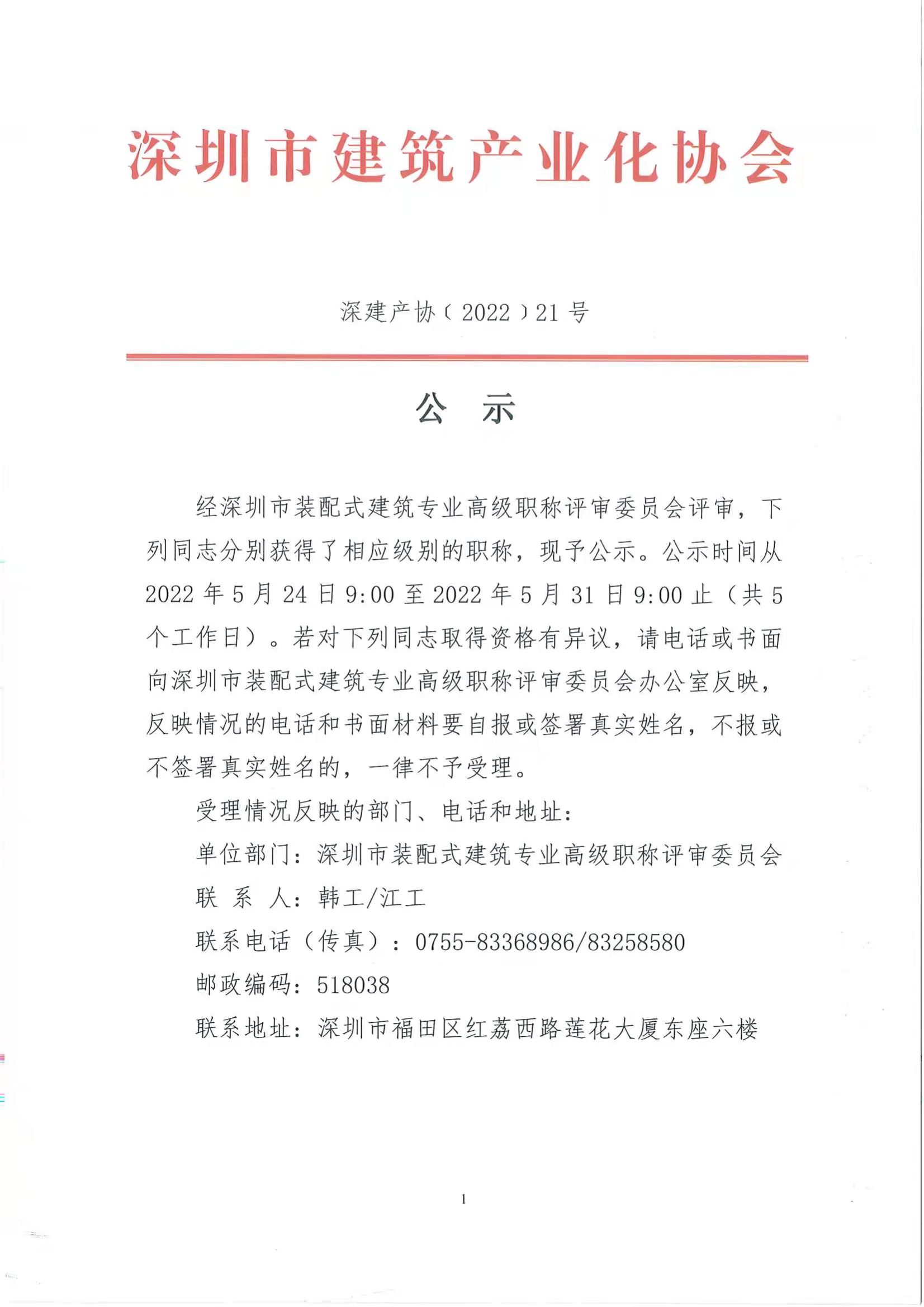 關(guān)于2021年度深圳市裝配式建筑專業(yè)高、中、初級(jí)職稱評(píng)審?fù)ㄟ^(guò)人員的公示