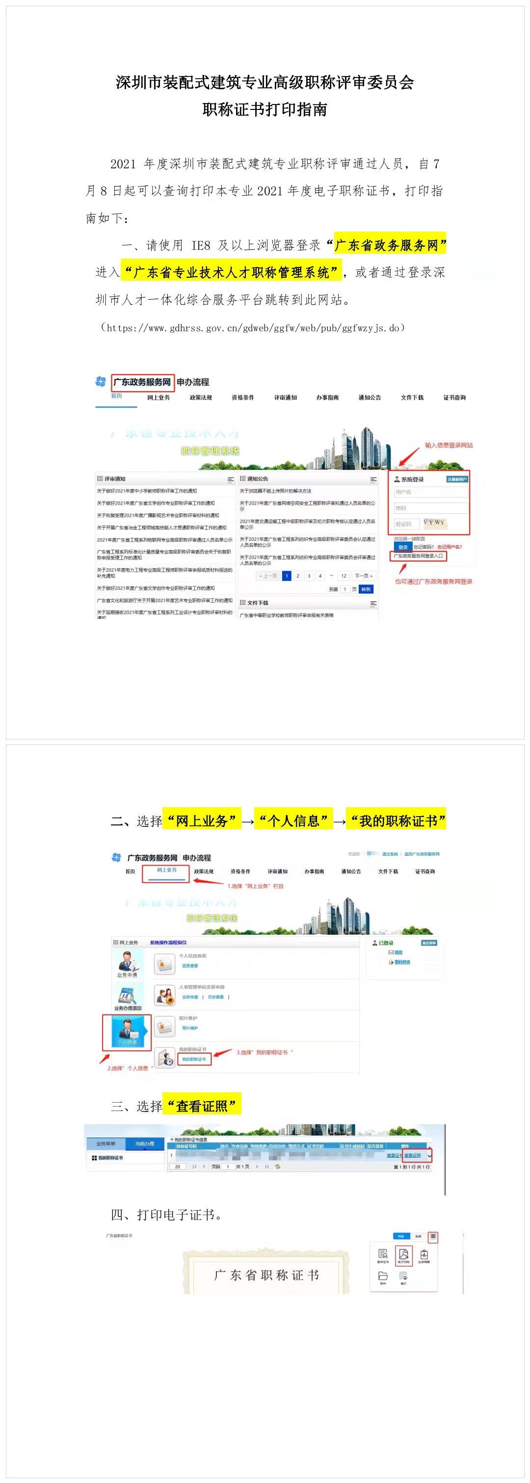 深圳市裝配式建筑專業高級職稱評審委員會職稱證書打印指南