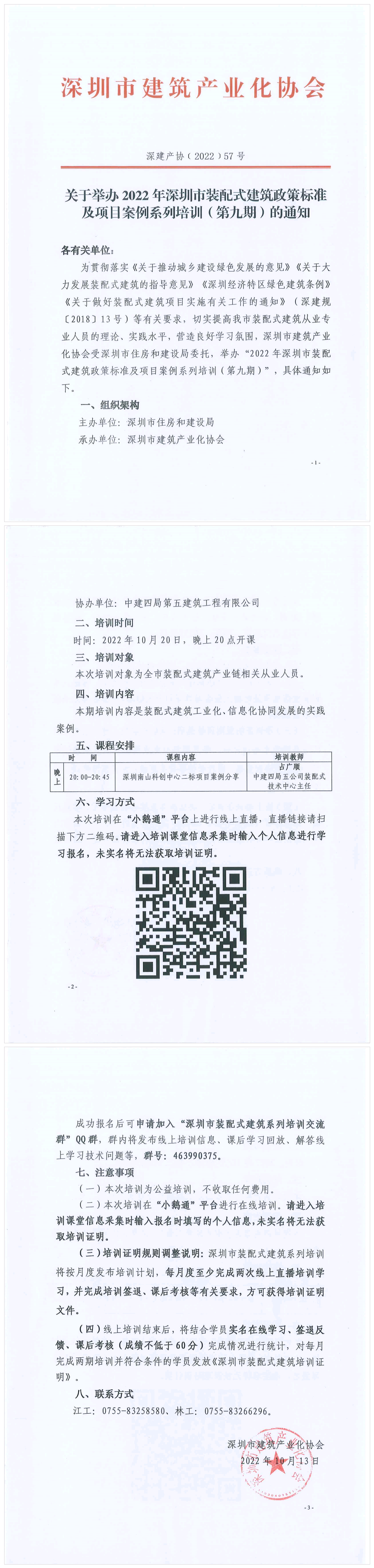 關于舉辦2022年深圳市裝配式建筑政策標準及項目案例系列培訓(第九期)的通知