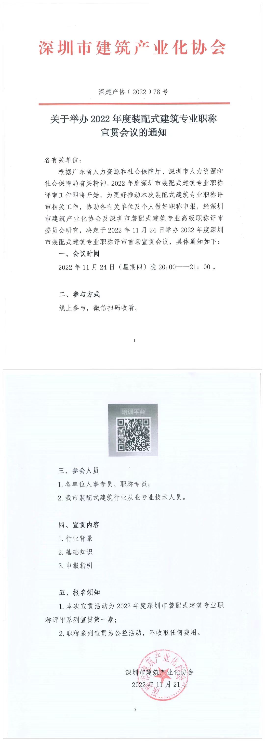 關于舉辦2022年度裝配式建筑專業職稱宣貫會議的通知