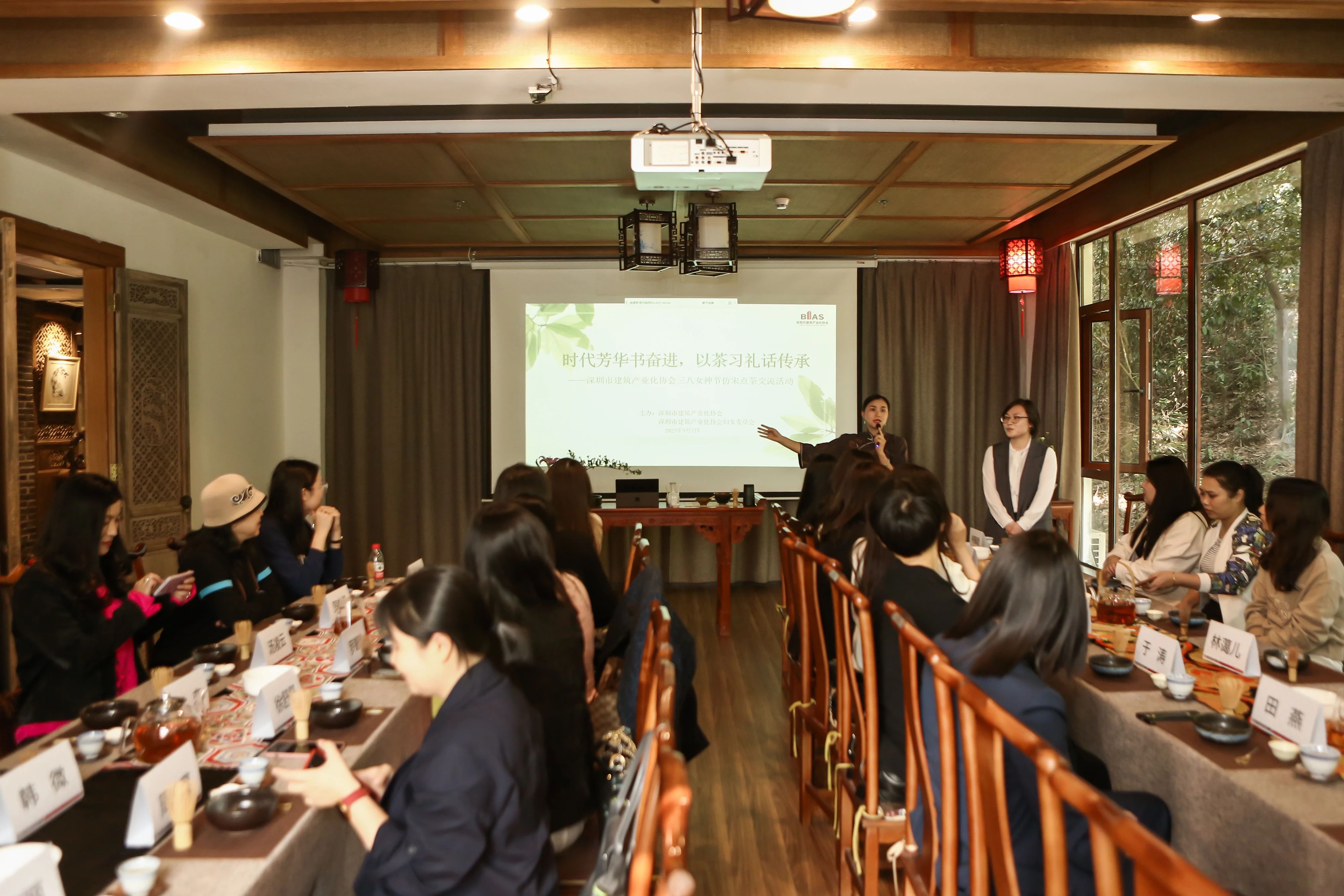 陽春三月,春暖花開。為進一步營造尊重婦女、保護婦女的社會氛圍,提升婦女社會參與感,豐富婦女精神文明生活,體現對女性同胞的特別關愛,“三八”國際婦女節到來之際,深圳市建筑產業化協會婦女委員會特別舉辦了“時代芳華書奮進,以茶習禮話傳承”三八女神節仿宋點茶交流活動。30余名來自行業的女企業家、女專家共同參與, 女神們深入體驗了仿宋點茶的點茶、擊拂、茶百戲的學習與制作。體驗學習后,大家自由交流,共話行業發展,在品茗聞香中更加拉近了彼此之間的距離。