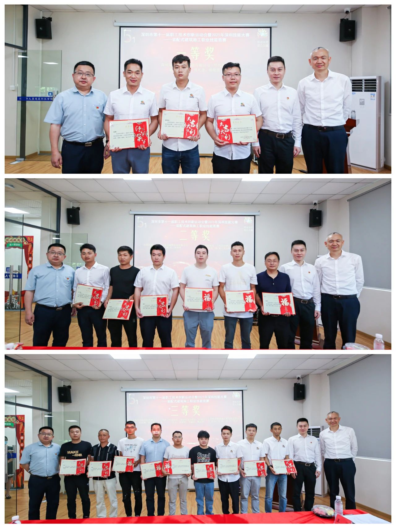 在“勞動者贊”環節中,隆重舉行了“深圳市第十一屆職工技術創新運動會暨2021年深圳技能大賽——裝配式建筑施工職業技能競賽”頒獎儀式,對獲獎的參賽團體和個人進行了表彰獎勵。