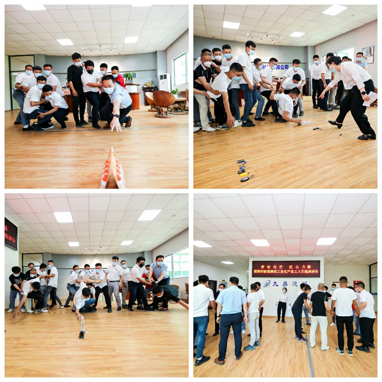 當天,為了讓工友們放松身心,提前感受勞動節氛圍,支部還共同精心策劃了趣味游戲,“齊心隔空取物”、“同心解手鏈”等小游戲,互動有趣、大家熱情高漲、現場陣陣歡呼,熱鬧非凡。