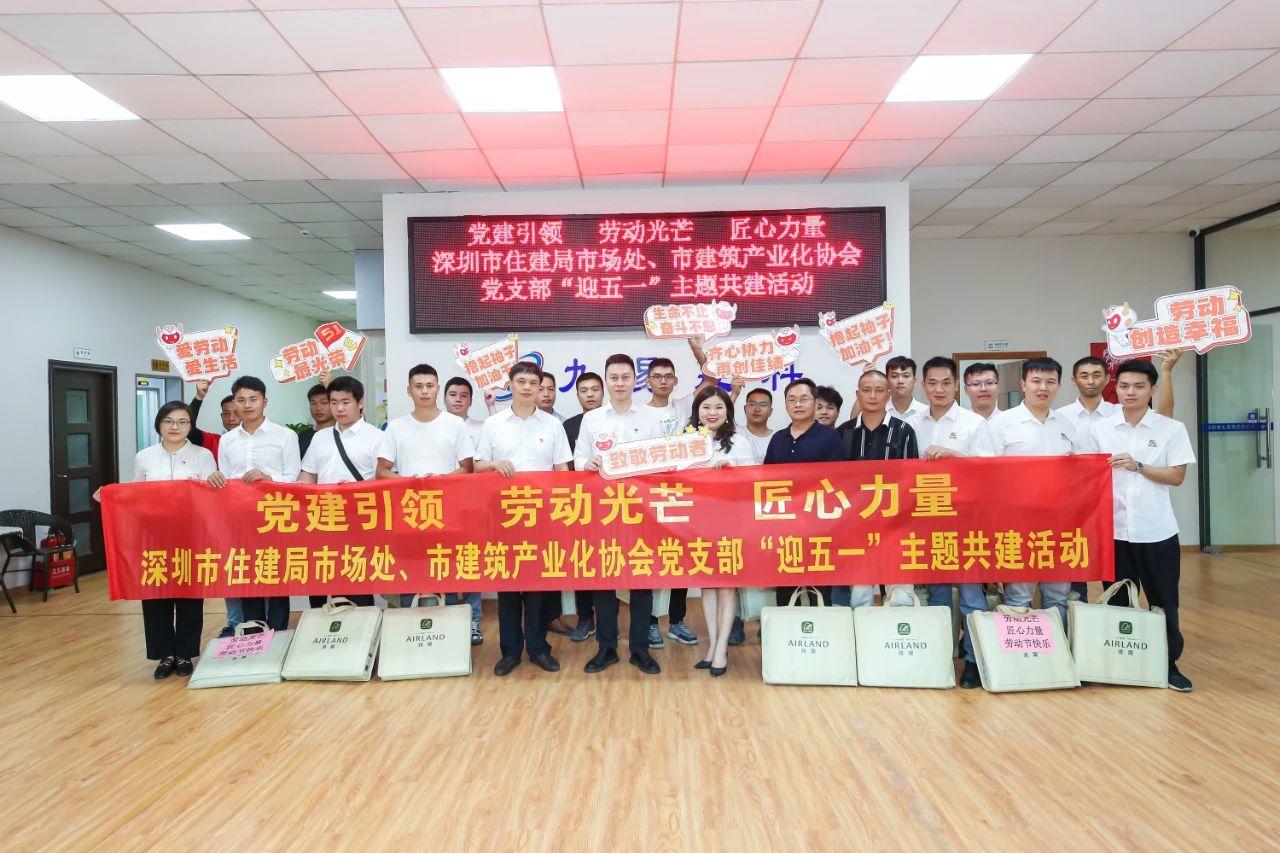 4月24日,值“五一國際勞動節”到來之際,為弘揚勞模精神,發揚榜樣力量,深圳市住房和建設局建筑市場和招標投標監管處、深圳市建筑產業化協會與深圳市九易建筑科技有限公司聯合舉辦了以“黨建引領 勞動光芒 匠心力量”為主題的深圳市新型建筑工業化產業工人交流座談會。