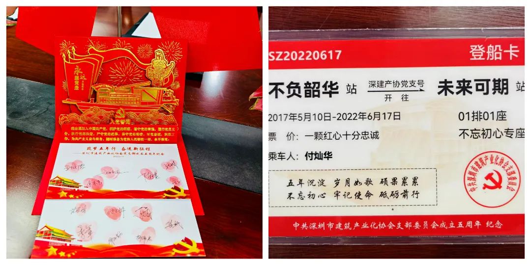 參會人員一起過了一個非常有意義的“政治生日”,大家在紅船紀念卡上按上心形手印,并簽上了各自的名字。黨支部給所有與會人員發了“登船卡”,寓意秉持紅船精神、繼續同船奮進,向“未來可期”站航行。