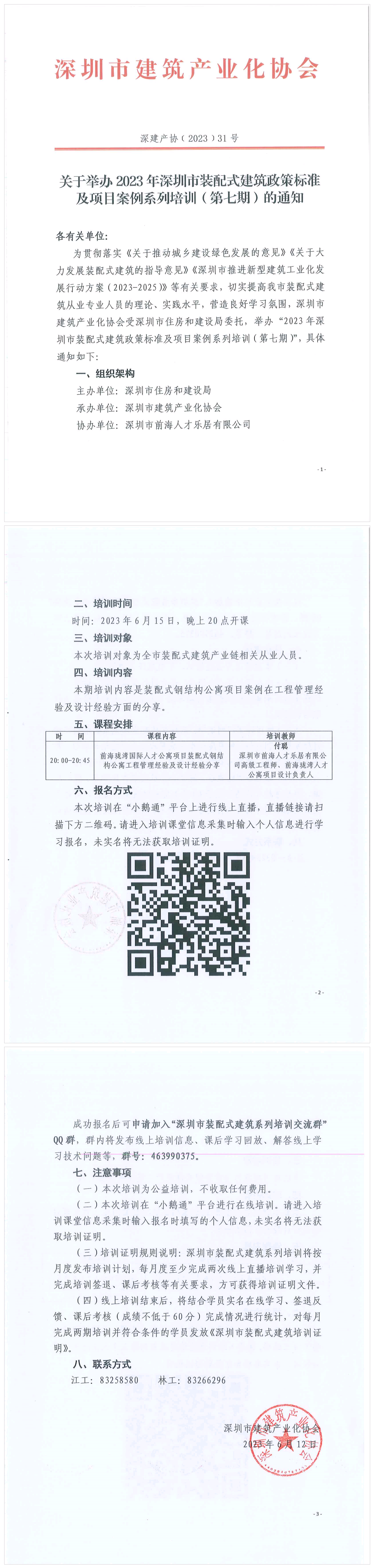 關于舉辦2023年深圳市裝配式建筑政策標準及項目案例系列培訓(第七期)的通知