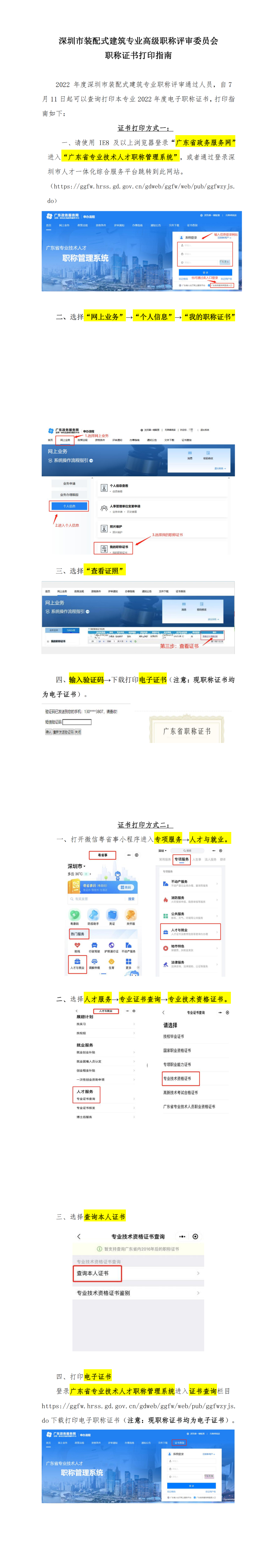 深圳市裝配式建筑專業高級職稱評審委員會職稱證書打印指南