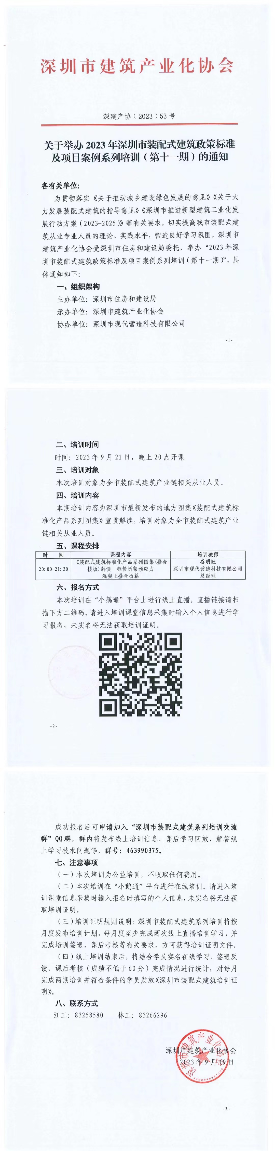 關(guān)于舉辦2023年深圳市裝配式建筑政策標(biāo)準(zhǔn)及項目案例系列培訓(xùn)(第十一期)的通知