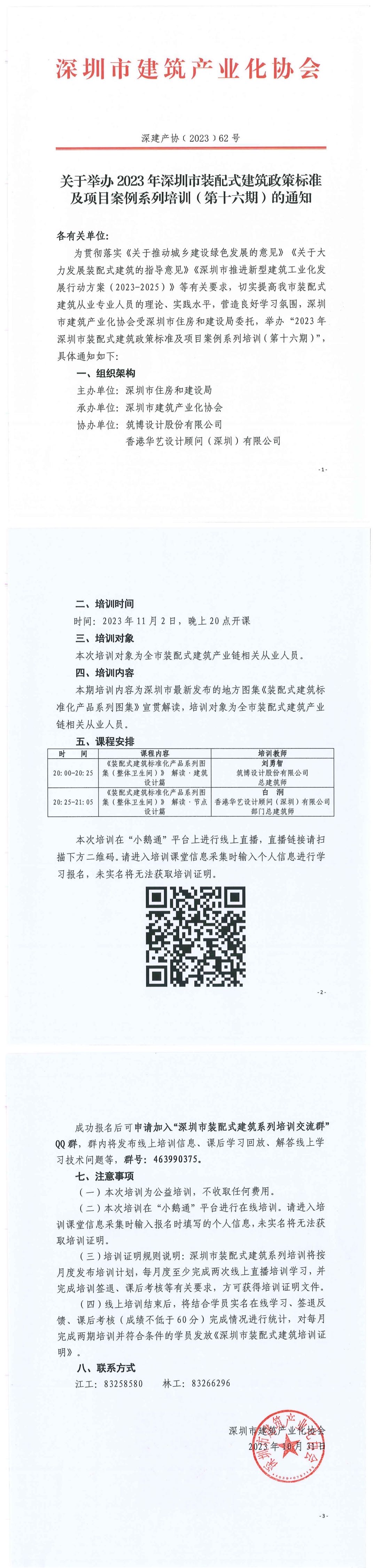 關(guān)于舉辦2023年深圳市裝配式建筑政策標(biāo)準(zhǔn)及項目案例系列培訓(xùn)(第十六期)的通知