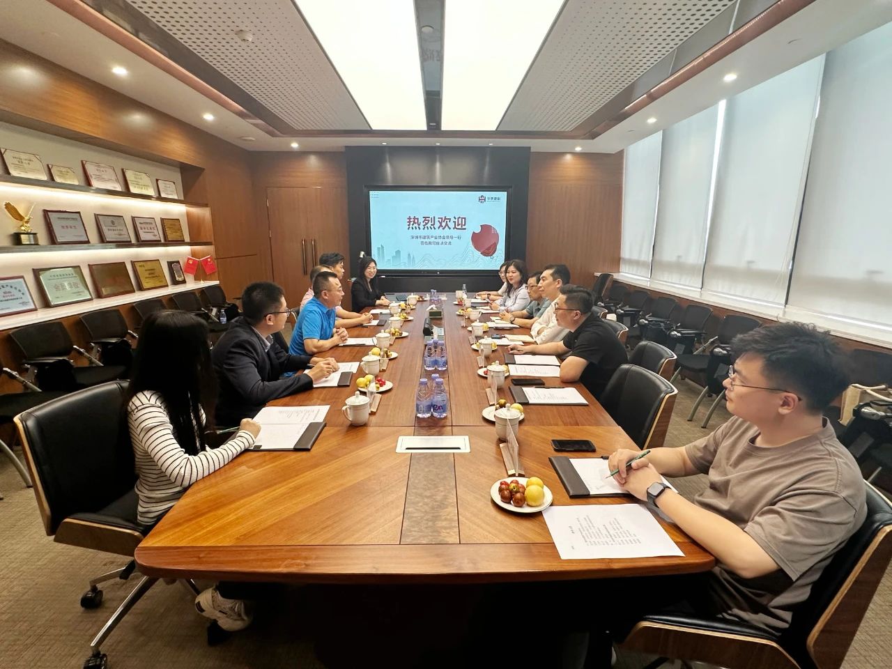 為更好地了解會員企業(yè)需求,服務(wù)企業(yè)與行業(yè)發(fā)展,充分發(fā)揮協(xié)會橋梁紐帶作用,讓協(xié)會服務(wù)工作契合會員企業(yè)實(shí)際需求,提升協(xié)會的行業(yè)凝聚力和向心力,促進(jìn)協(xié)企高質(zhì)量發(fā)展,11月2日下午,深圳市建筑產(chǎn)業(yè)化協(xié)會會長、華陽國際董事、副總裁龍玉峰,副會長、萬科建研中心總經(jīng)理王茂偉,副會長、廣東睿住運(yùn)營管理部總監(jiān)祝大川,協(xié)會黨支部書記、專職副會長兼秘書長付燦華等一行走進(jìn)了副會長單位——深圳華澳建科集團(tuán)有限公司,同時,也通過老會長的親筆書法,為會員企業(yè)送上真摯的祝福,協(xié)會副會長、華澳建科董事長唐正軍,副總經(jīng)理、商務(wù)中心負(fù)責(zé)人羅倫煥,副總經(jīng)理、經(jīng)營中心負(fù)責(zé)人吳沁桐,設(shè)計(jì)院院長、華筑人居副總經(jīng)理薛霞磊等予以熱情接待,期間,大家圍繞裝配式裝修、智能建造等行業(yè)創(chuàng)新發(fā)展話題熱烈交流,同時深度交互了對協(xié)會發(fā)展與行業(yè)可持續(xù)發(fā)展的建言建議。