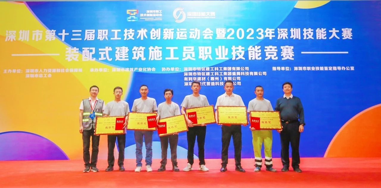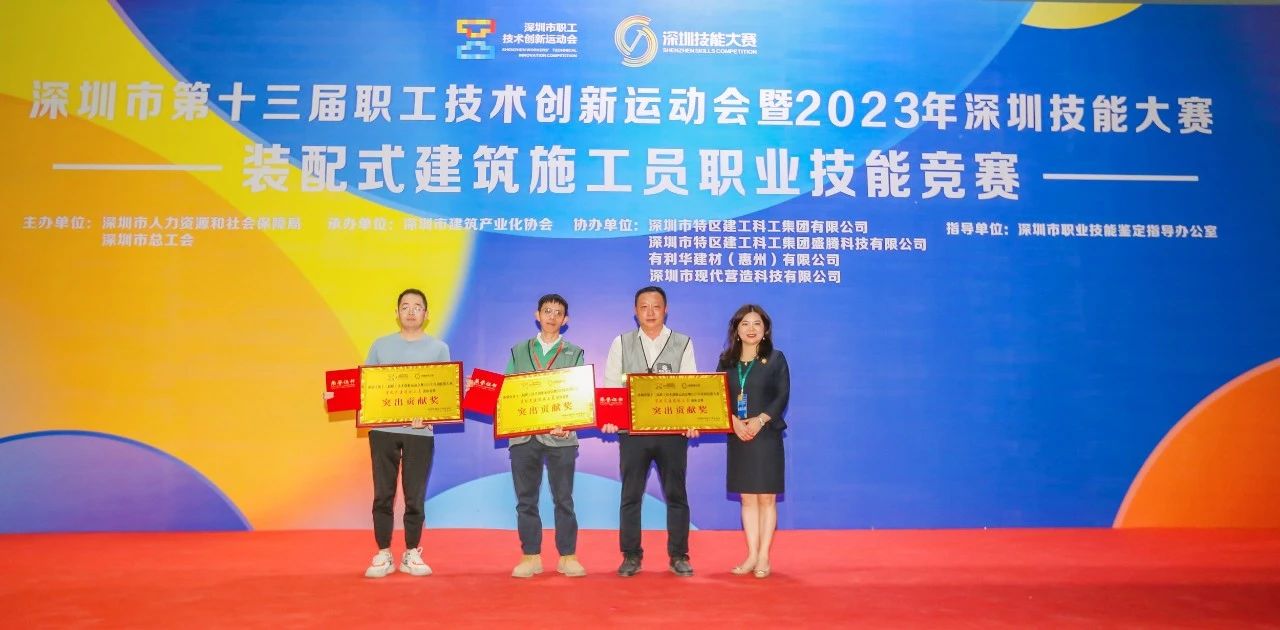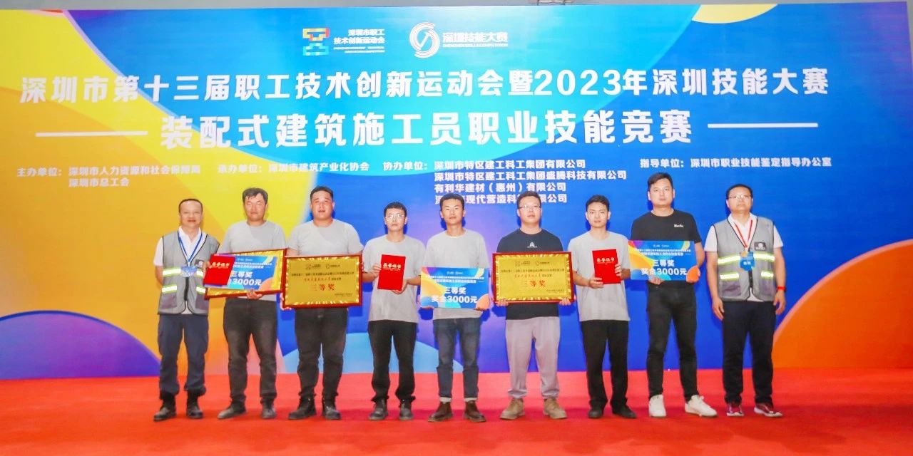 一是孵化培育了一批優秀產業工人,多名選手榮獲“深圳市技術創新能手”,盛騰的一名同志榮獲市級“五一勞動獎章”;二是首創了裝配式建筑十大專業技術工種,明確產業工人培養方向;三是聯合共建了8個裝配式建筑實訓基地,今天的賽場也是其中之一,今年還正式建成寶安石巖主基地,一期1.2萬平方米,可容納每年2萬工人培訓,構建了產業工人培訓渠道;四是成功開發了全省首個裝配式建筑專項專業能力考核,探索打通了產業工人評價、補貼方式;五是主辦承辦舉辦了6次省、市級裝配式建筑技能競賽,激發了產業工人的榮譽感和積極性。
