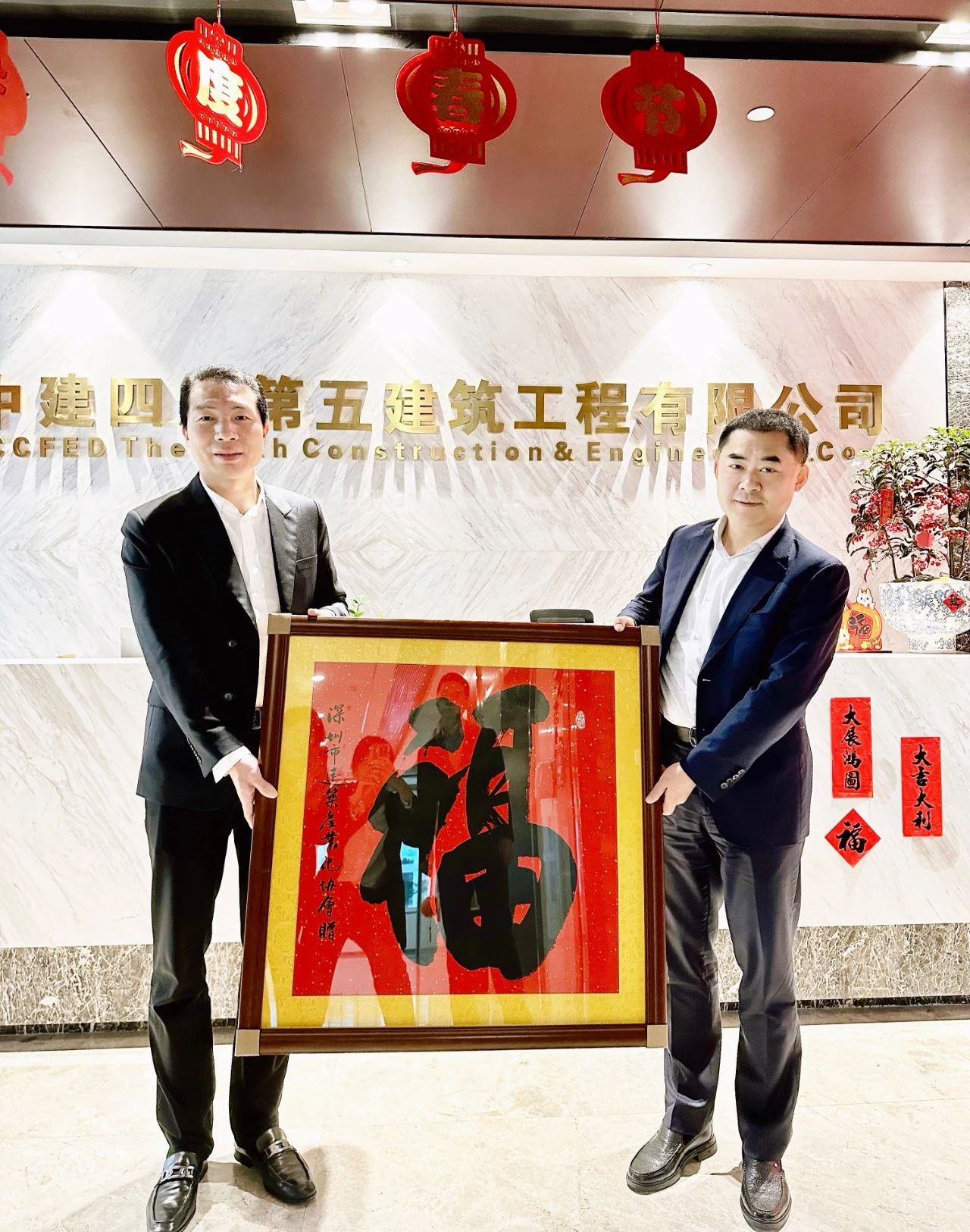 為更好地了解會員企業需求,服務企業與行業發展,充分發揮協會橋梁紐帶作用,讓協會服務工作契合會員企業實際需求,提升協會的行業凝聚力和向心力,促進協企高質量發展,2月28日下午,深圳市建筑產業化協會會長、華陽國際執行董事、副總裁龍玉峰,黨支部書記、專職副會長兼秘書長付燦華,副會長、深圳建科院副董事長陳澤廣,時代裝飾常務副總裁曲勝等一行共同走進副會長單位中建四局第五建筑工程有限公司,同時,也通過老會長的親筆書法,為中建四局五公司送上真摯的祝福。