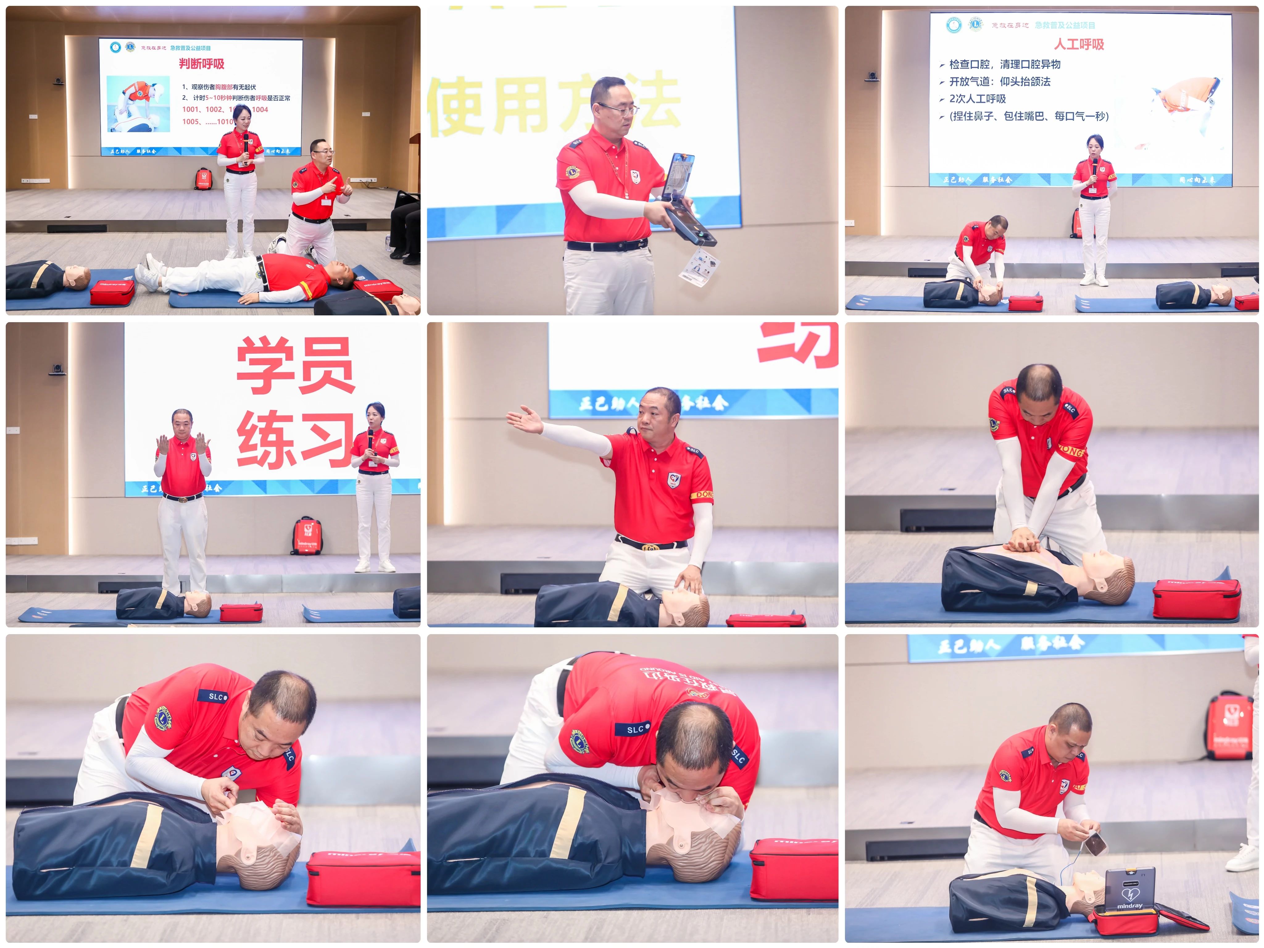 下午的培訓(xùn)課程由深圳獅子會(huì)授課教官劉安迪主講,內(nèi)容是重要的“心肺復(fù)蘇技術(shù)(CPR)”課程,她先詳細(xì)講解每一個(gè)分解步驟和動(dòng)作,獅子會(huì)服務(wù)隊(duì)協(xié)助演示,并帶領(lǐng)學(xué)員反復(fù)實(shí)操訓(xùn)練。