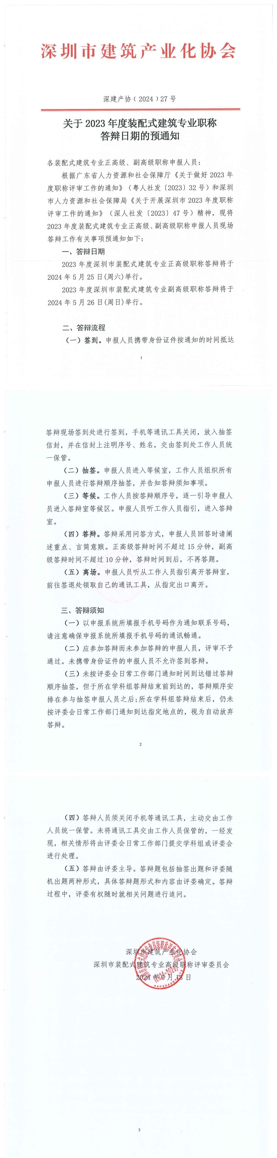 關于2023年度裝配式建筑專業職稱答辯日期的預通知