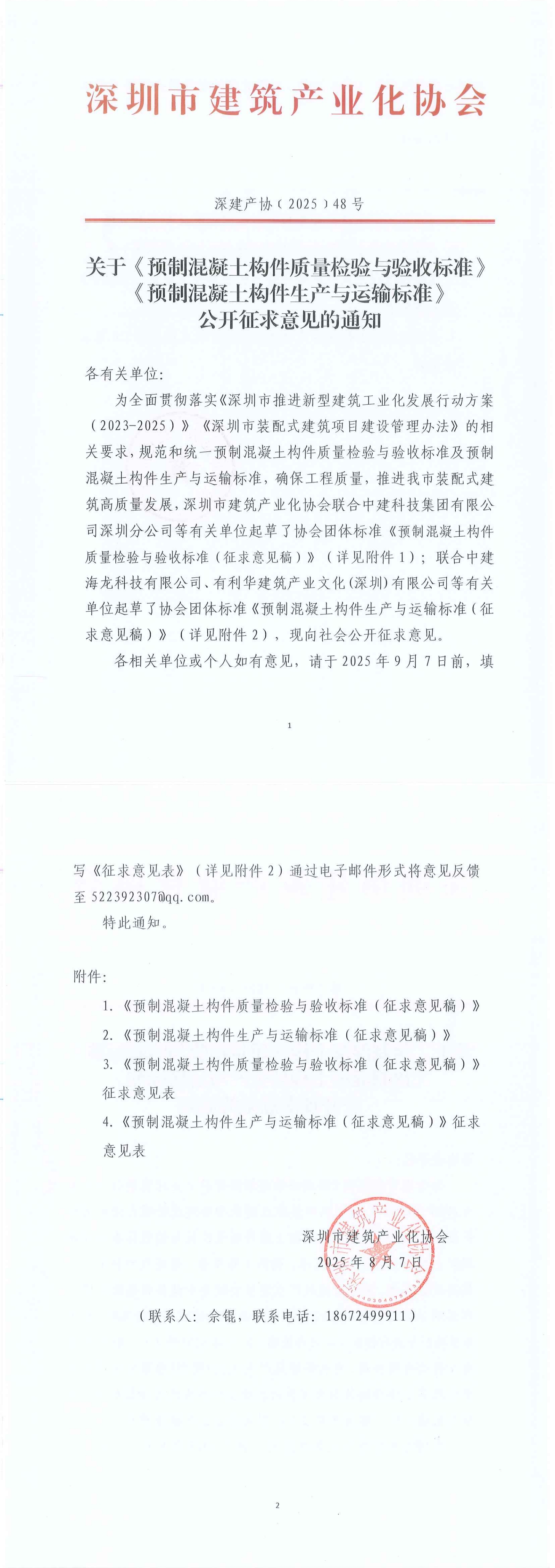 4.《預(yù)制混凝土構(gòu)件生產(chǎn)與運輸標準(征求意見稿)》征求意見表
