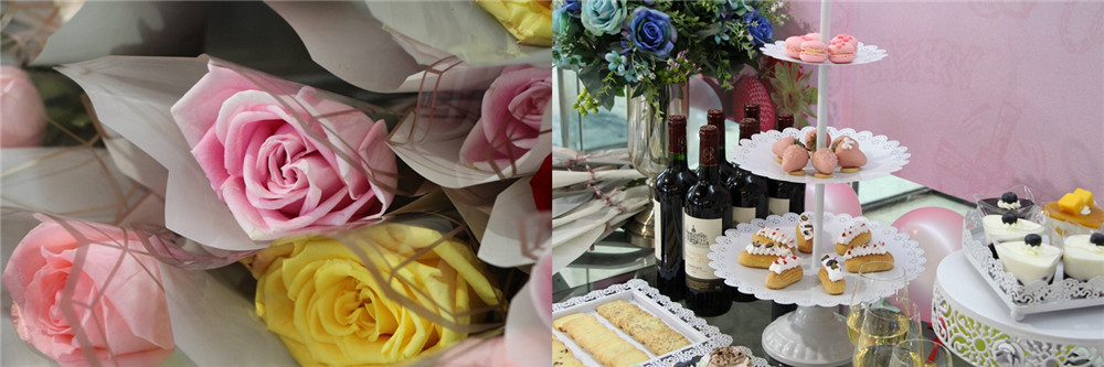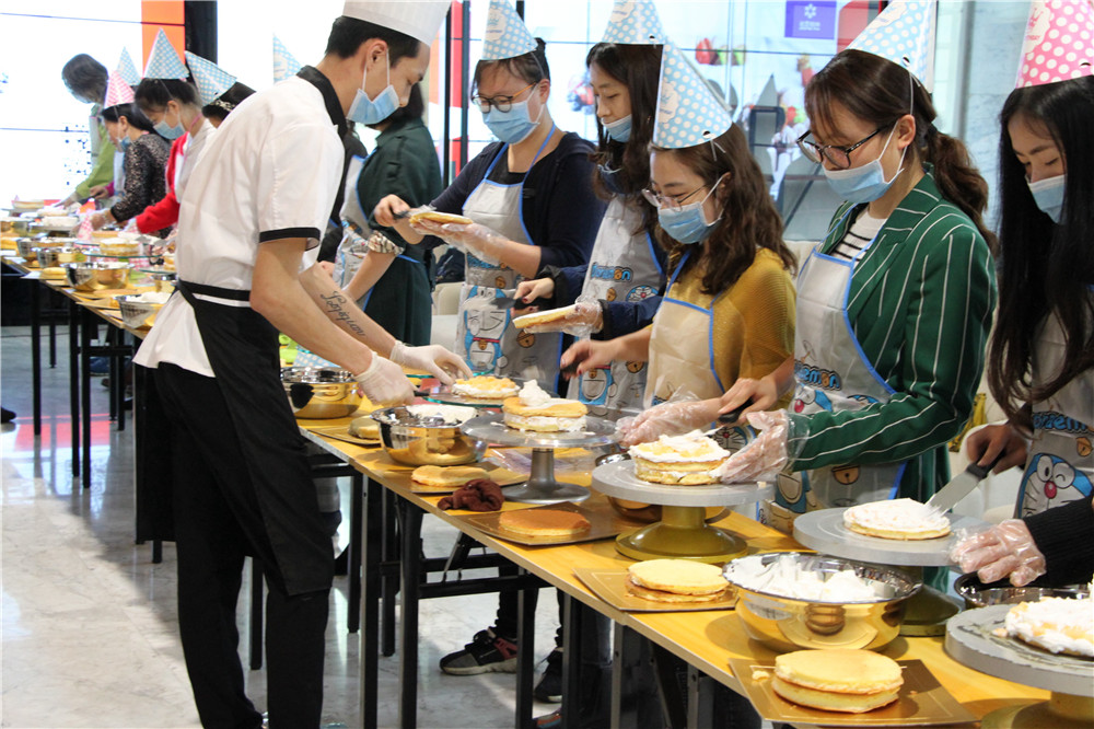 白色的面粉摻著黃油和牛奶的甜香,新鮮的水果點綴在抹了奶油的蛋糕體上……一個個精致可口的蛋糕就這樣在大家的巧手下出爐了。每人手持一支散著淡香的玫瑰,口品一杯淳甘馥馥的紅酒,大家都卸下往日的忙碌,將所有的煩惱與壓力都拋到九霄云外,徜徉在一片歡樂溫馨的海洋里。