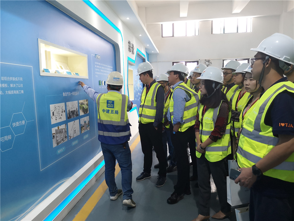 考察人員一行在項目相關技術人員的帶領下,分批參觀了項目的安全教育培訓體驗館、裝配式實驗樓、綠色建造展廳、BIM展廳等地,了解項目的生產工藝、施工流程、過程管控等。此外,在項目標準層觀摩時,項目技術人員認真講解該項目的PC構件安裝流程、墻板生產及安裝的工藝、免抹灰的處理技術、預制外墻板水平縫防水節點構造等,并現場解答考察人員提出的相關技術疑問。