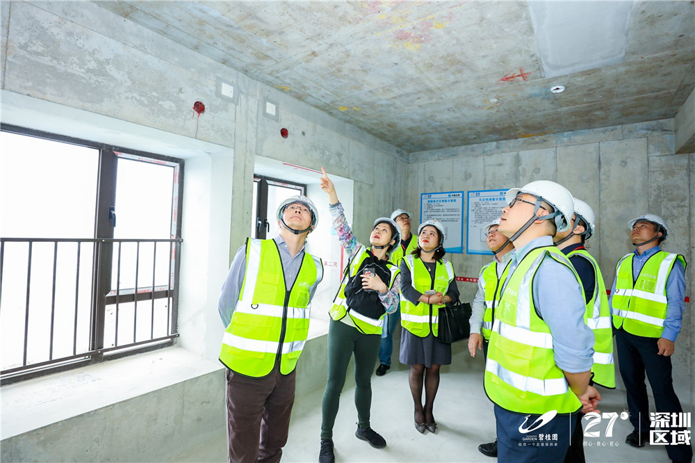 考察人員一行在深圳市碧桂園房地產投資有限公司副總裁朱咸軍、工程管理部總經理舒安等相關領導的引領下,深入體會該公司如何秉持“初心、良心、匠心”,用裝配式建筑技術及精細化管理模式創新打造碧桂園集團在深圳區域的首個項目。