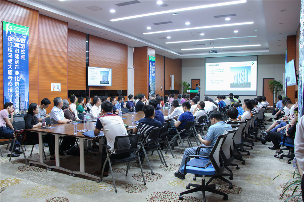 在項目總承包公司深圳市金鑫綠建股份有限公司(以下簡稱“金鑫綠建”)總經理張建設、副總經理沈兵等人的熱情引領和項目相關技術人員的詳細講解下,考察人員一行將庫馬克大廈的SLAT裝配式鋼結構輕板建筑技術體系看“清”看“透”,體驗到標準化設計、工廠化制作、信息化管理等建造特點呈現的別樣魅力。
