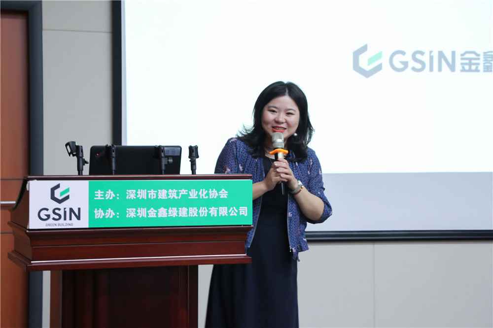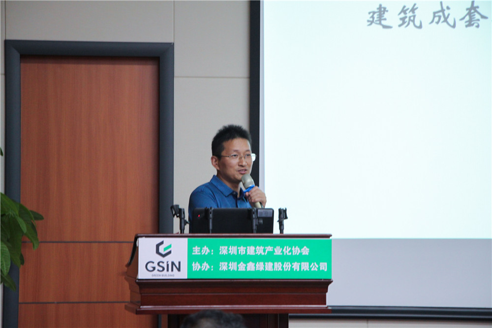 金鑫綠建總工程師王建河大方地從項目的研發歷程、主體結構、主要節點設計、ALC外墻板構造設計、ALC內墻板構造設計、鋼樓梯設計、外墻板吊籃施工、內墻板安裝等方面與觀摩人員剖析庫馬克大廈項目。據王建河介紹,該項目具有安全性高、質量可靠、縮短工期、減小建造成本、節約材料、環境保護等體系效益。