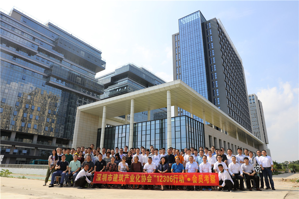 廣東省首批裝配式建筑示范項目、2018年度廣東省鋼結構金獎“粵鋼獎”、深圳市第一個通過技術認定的裝配式鋼結構項目……4月24日,深圳市建筑產業化協會監事長李軍、秘書長付燦華帶領協會專家、會員朋友,深圳市龍崗區工程質量監督檢驗站孫志東,深圳市龍崗區住房和建設局溫杰等近百人走進這個滿載榮譽的項目進行參觀考察。